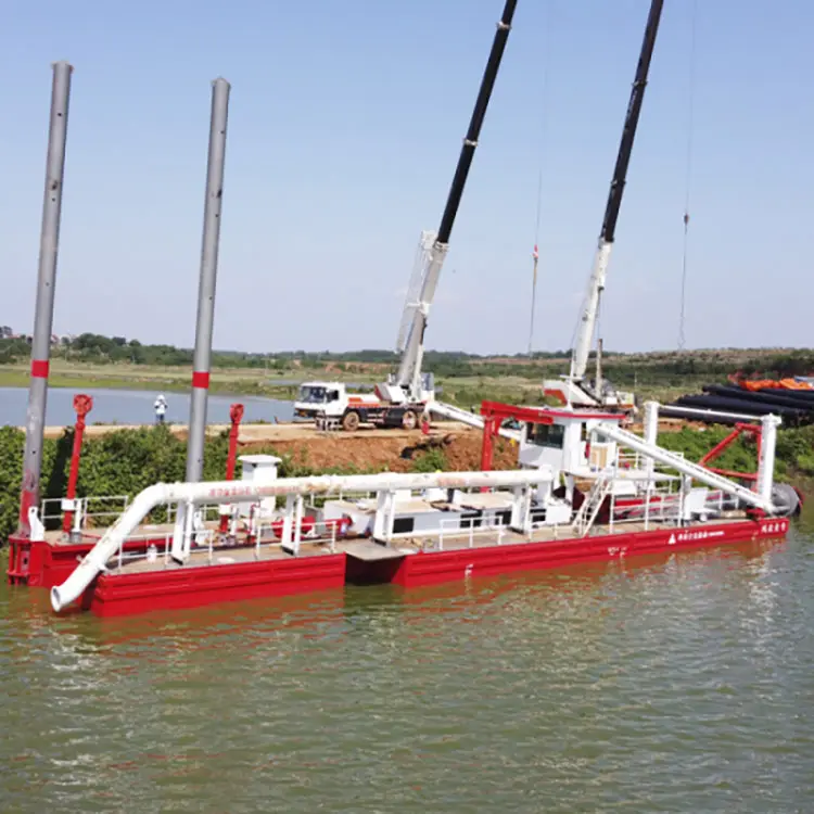Cummins 디젤 엔진을 갖춘 당사 커터 흡입 강 모래 준설 기계는 자체 추진 또는 비 자체 추진, Cummins 디젤 엔진을 갖춘 휴대용 커터 흡입 강 모래 준설 기계입니다. 선체는 해체 및 상자형 구조를 사용하며 해체 유형은 작업장에서 쉽게 조립할 수 있으며 이에 따라 도로, 철도 및 컨테이너로 운송할 수 있어 설치 및 작업장 간 이동이 편리합니다. 전력 시스템은 고객의 요구 사항에 따라 전기 시스템 또는 디젤 엔진 구동 시스템으로 설계될 수 있습니다. 커민스 디젤 엔진을 장착한 커터 흡입 강 모래 준설 기계의 장비는 횡단 장치, 커터 사다리 리프팅 장치, 스퍼드 및 데크 크레인과 같은 벨로우즈와 같습니다.